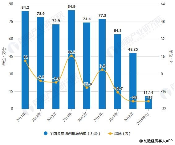 2011-2019年Q1全國金屬切削機(jī)床銷量統(tǒng)計(jì)及增長情況