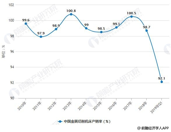 2010-2019年Q1中國金屬切削機(jī)床產(chǎn)銷率統(tǒng)計(jì)情況